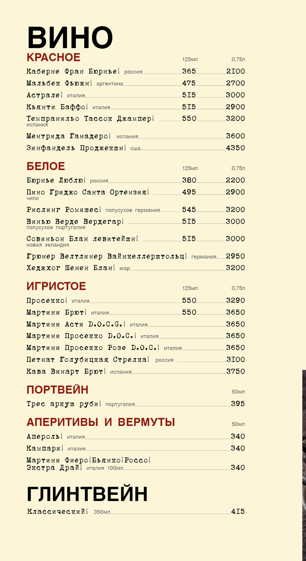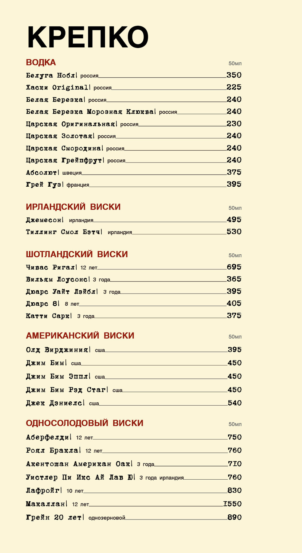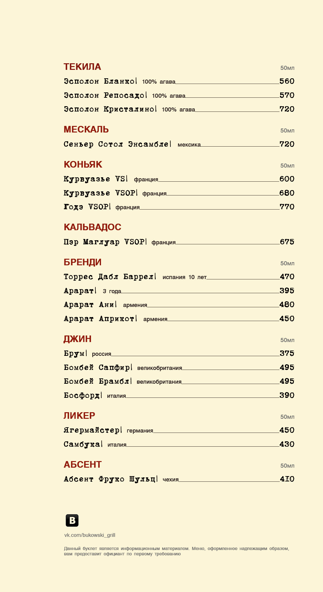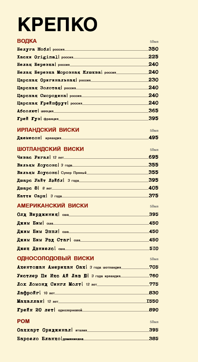 Карта бара